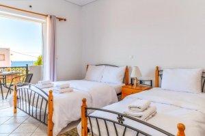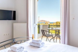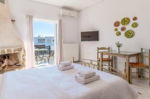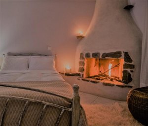 Request the Serenity Cocoon room. It is the ultimate retreat for couples; its cozy open-plan layout and stone-built fireplace create the most romantic atmosphere in Monemvasia, especially during the autumn and winter months when the mist rolls off the Rock.