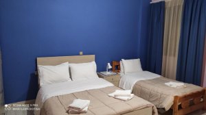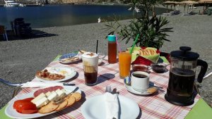 All air-conditioned rooms at Porto Sabatiki come with a private balcony and enjoy sea or side sea views. They are equipped with a TV, mini fridge and iron.