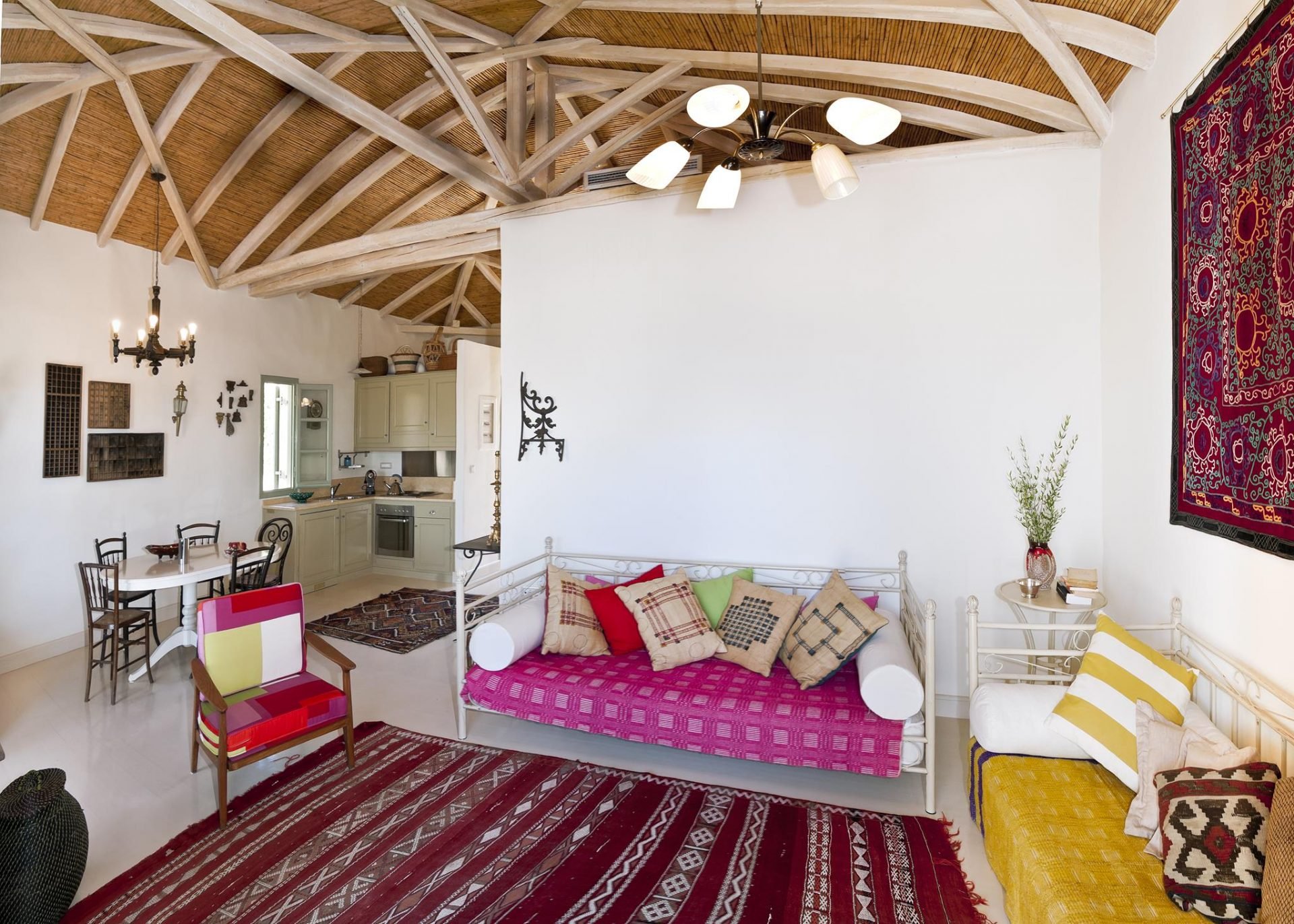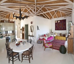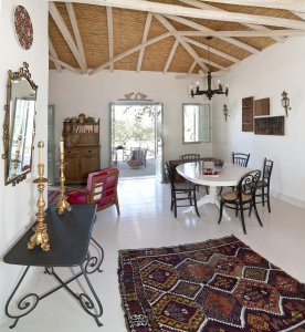 The combination of Maniot architecture with vintage furniture and rare collectibles creates an atmosphere that feels like it’s straight out of another, more romantic era, offering the explorer absolute serenity within a lush olive grove.