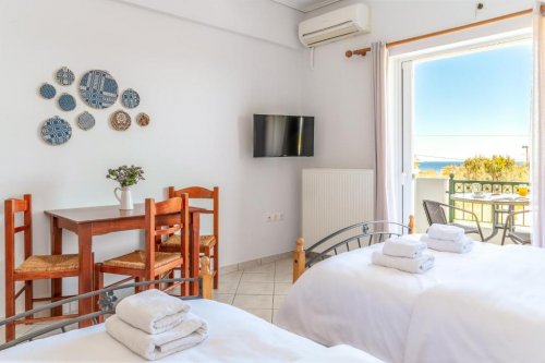 For those who want the sea at their feet and the convenience of direct access, seaside options in Gefyra and nearby shores offer rooms with balconies over the waves.