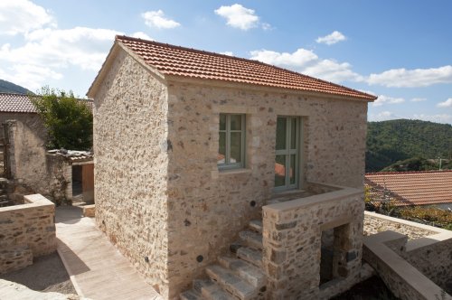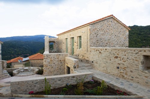 So, close to the clock tower square and just over the chapel of Saint Ilias, three fully refurbished buildings stand out among old or abandoned houses; they continue to fit into their surroundings, but, at the same time, give visitors the impression of revitalization, the sense of a new phase.
