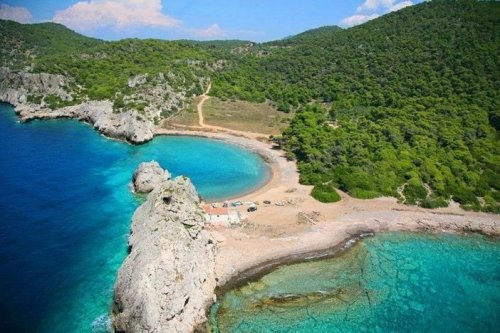 Τιρκουάζ νερά, λευκές ρηγματώδεις πλάκες και μια αίσθηση απόλυτης ελευθερίας συνθέτουν την πιο εντυπωσιακή παραλία του Κορινθιακού Κόλπου.